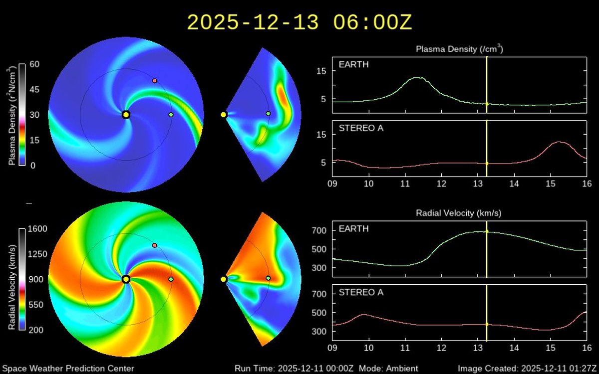 В районе 13 декабря планета покинет быстрый поток частиц и пройдет по краю медленного, но более плотного потока плазмы. Если Земля окажется в потоке глубже, чем ожидают аналитики, то мы вполне можем увидеть ночную магнитную бурю.