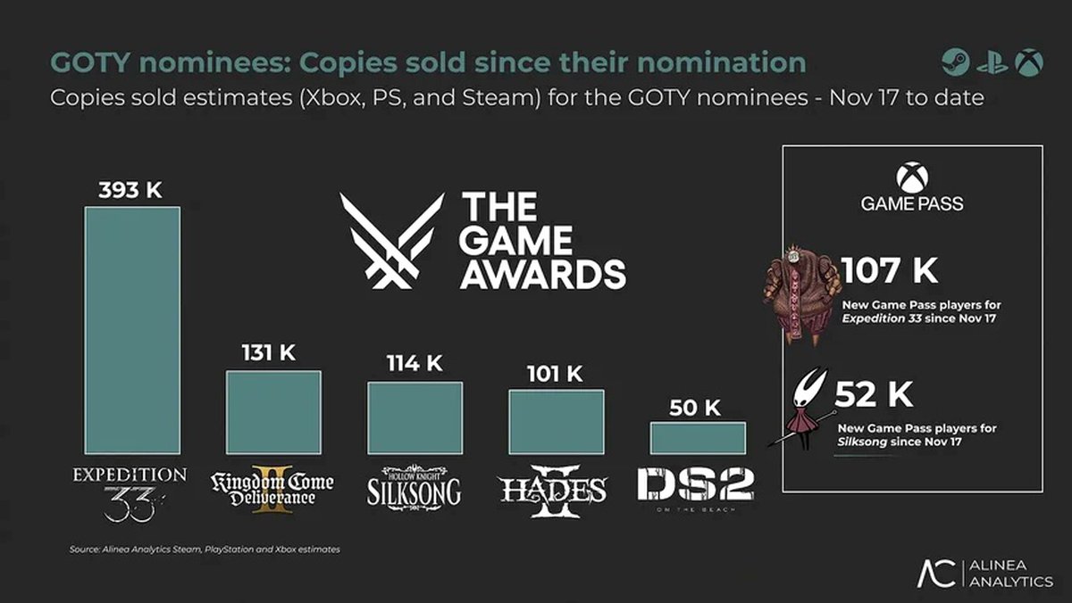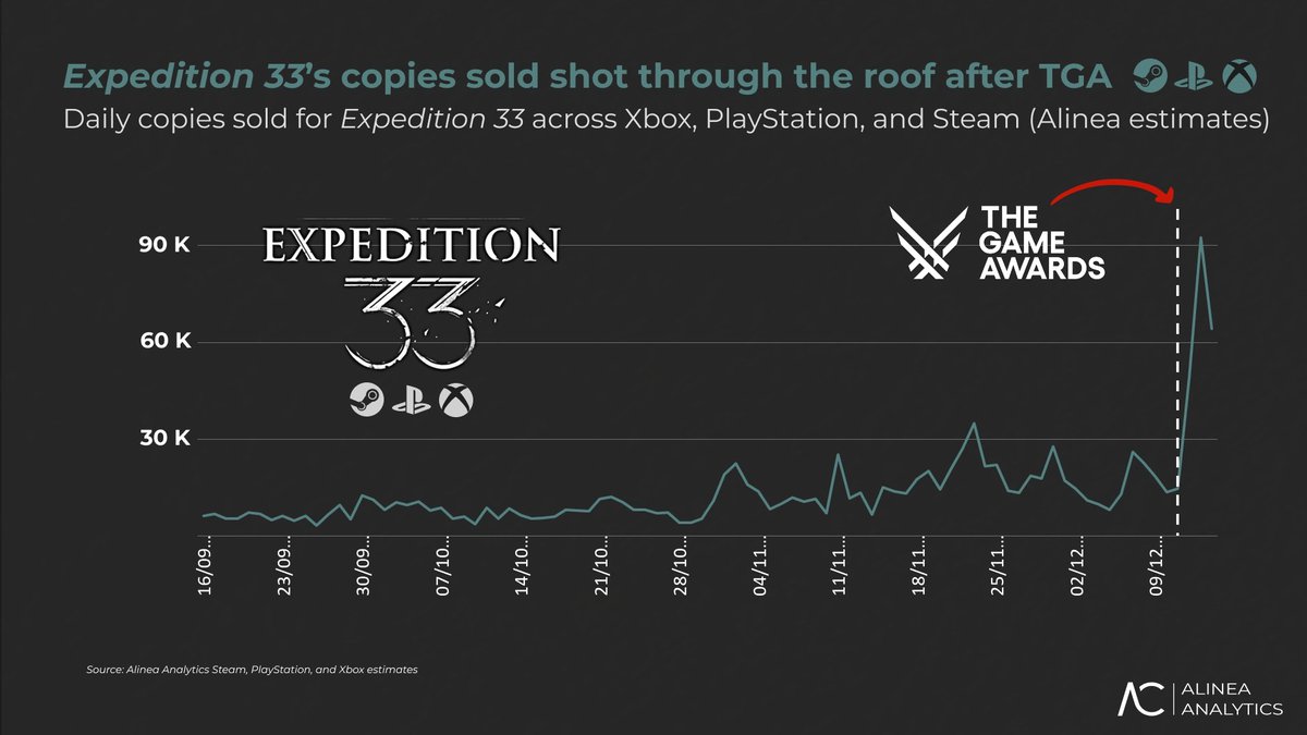 Предполагается, что победа на The Game Awards сгенерировала порядка 200 тысяч копий «дополнительных» продаж, это принесло разработчикам Clair Obscur Expedition 33 несколько миллионов евро.