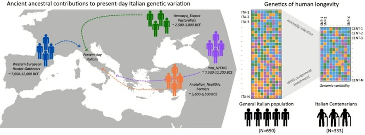 Исследование основано на анализе 1126 геномов: 333 столетних долгожителя, 690 итальянцев среднего возраста в качестве контрольной группы, а также 103 древних генома. Сопоставляя данные ДНК, ученые стремились определить, какие именно исторические популяции могли внести вклад в увеличение долголетия.