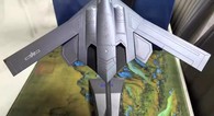 С моделью связано два интересных момента. Во-первых, самолет сильно напоминает американский бомбардировщик B-2 (для китайской техники это нормально). Во-вторых, у модели интересное хвостовое оперение.