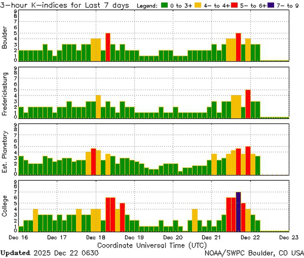 Предварительно аналитики считают, что нестабильная геомагнитная обстановка будет наблюдаться не только 22 и 23, но и 24 декабря. Подробнее мы поговорим о геомагнитной обстановке ближайших дней в вечернем прогнозе.