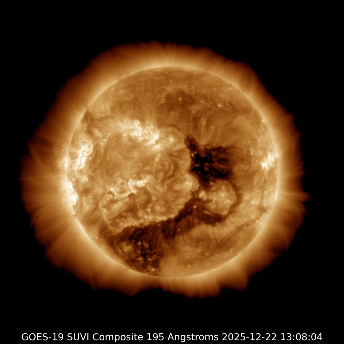 Геомагнитная буря 22 декабря объяснялась прямой связью магнитных полей Солнца и Земли, у бури 23 декабря другой источник. На этот раз до Земли должен добраться поток солнечного ветра, выброшенный из крупной корональной дыры.