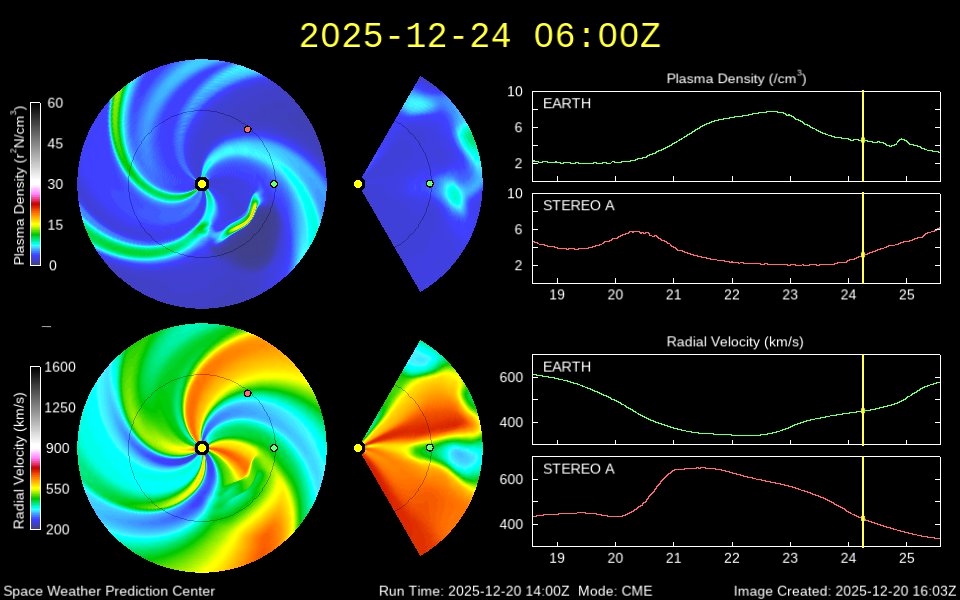Согласно предварительному прогнозу, 25 декабря Земля все-таки начнет выходить из потока солнечного ветра.