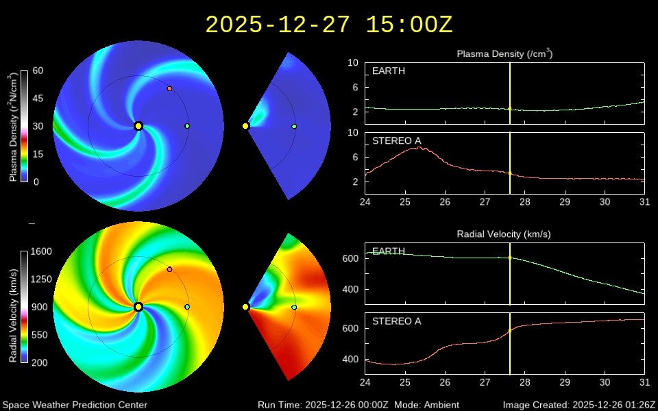 В последние пару дней на Земле наблюдались слабые региональные магнитные бури, но 27 декабря, похоже, ничего подобного не будет. Кажется, наша планета наконец выходит из потока солнечного ветра.