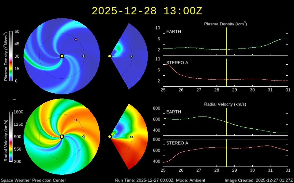 Геомагнитная обстановка 28 декабря будет спокойной, уверены аналитики NOAA США и британского Met Office. С активностью магнитосферы 27 декабря они слегка не угадали (активность оказалась выше прогнозов), но 28 декабря аналитики не ждут особых возмущений.