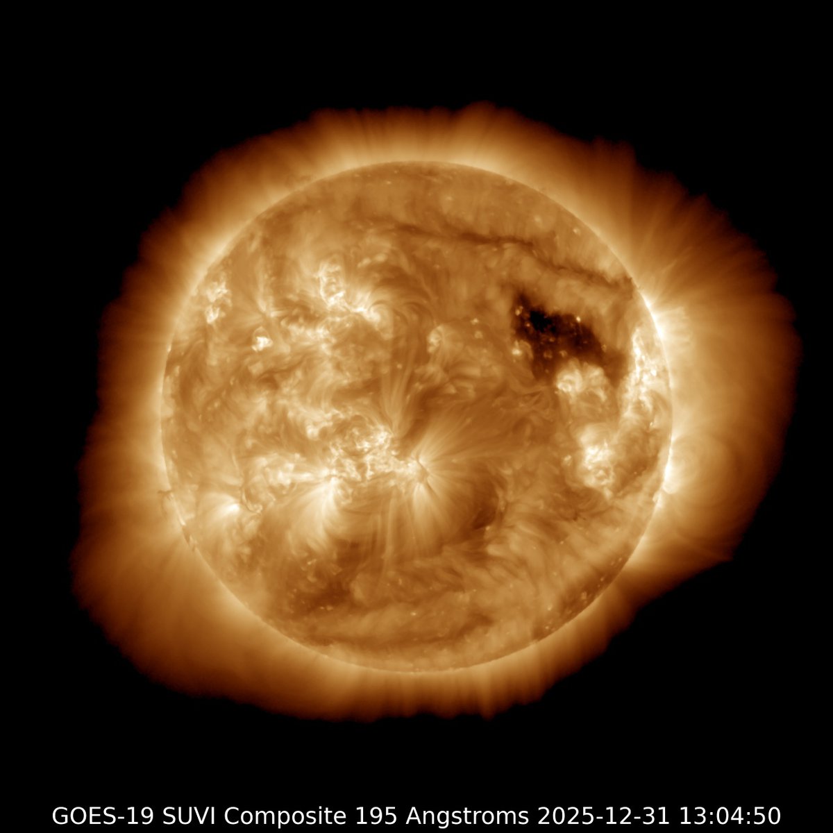 Ожидается, что 2 января Земля продолжит проходить через поток солнечного ветра и индекс Kp не опустится ниже 3 баллов. Новых корональных выбросов пока нет, но они могут произойти в любой момент.