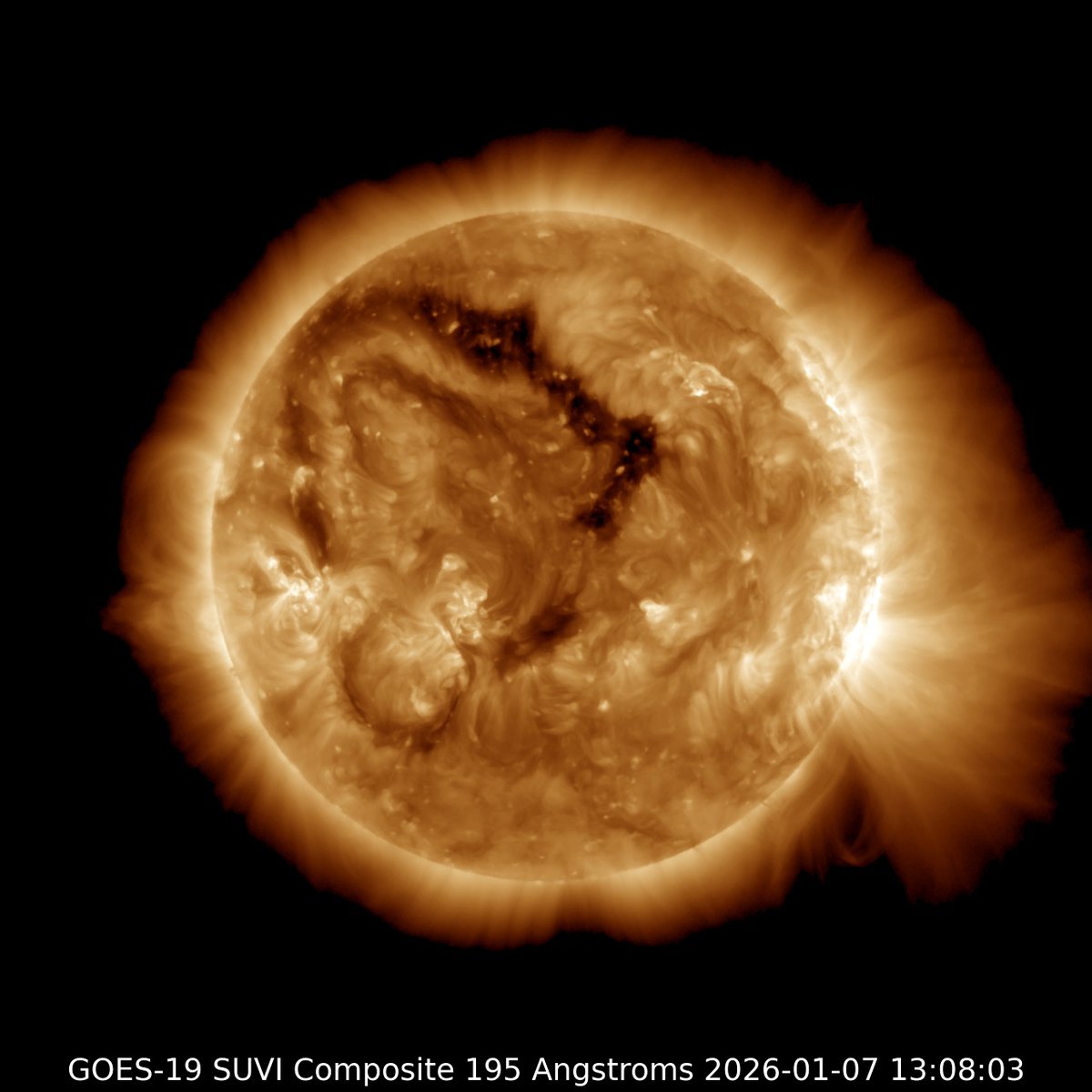 В любом случае, сила магнитной бури 8-9 января ожидается на уровне класса G1. Корональная дыра, испускающая частицы, не слишком крупная, магнитные бури связывают с областями со-вращающегося взаимодействия внутри потока частиц.