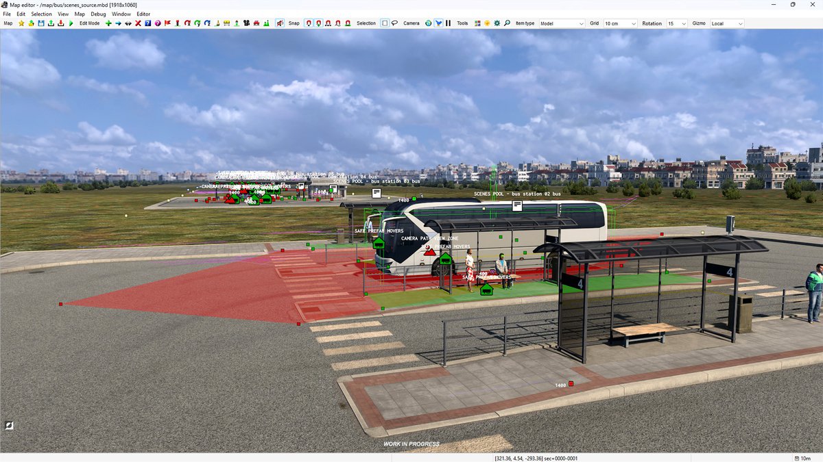 Заодно выяснилось, как «автобусная» часть контента выглядит с точки зрения игрового движка. На скриншоте ниже, например, можно увидеть редактор, где открыта одна из новых остановок общественного транспорта.