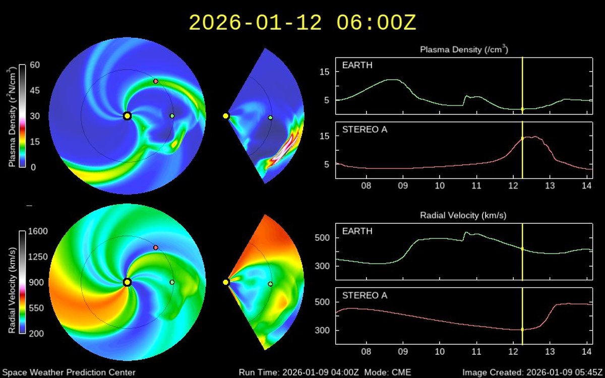 Кроме того, геомагнитная активность на уровне 3.6 балла, прогнозируемая 12 января, вполне может превратиться в 4.6 балла, означающие магнитную бурю класса G1. Современные модели распространения солнечного ветра не слишком точно предсказывают такие различия в уровнях геомагнитной активности.