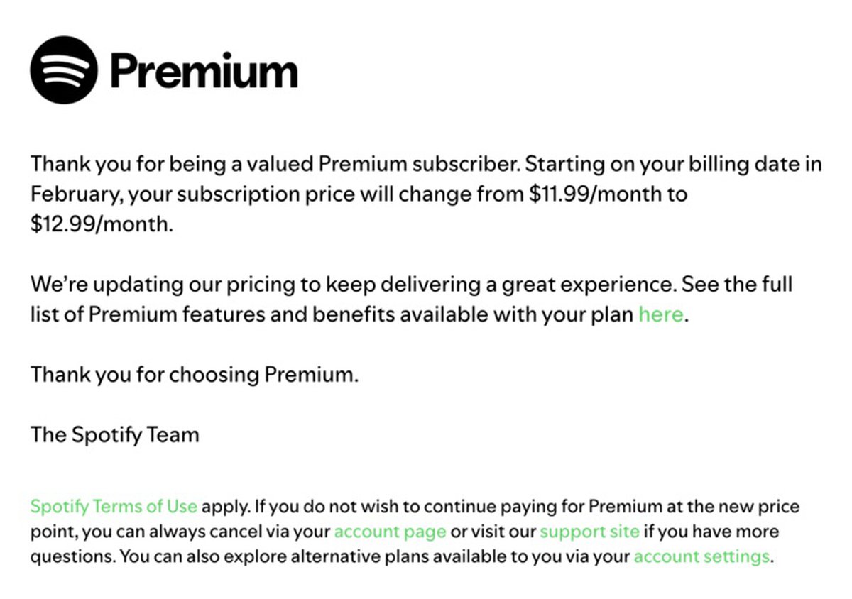 В пресс-релизе Spotify подорожание объясняют желанием и дальше предлагать наилучший пользовательский опыт и одновременно приносить выгоду музыкантам.