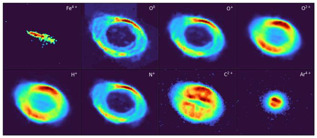 Железная «полоса» расположена внутри внутреннего эллиптического слоя туманности. По оценке ученых, ее протяженность примерно в 500 раз превышает радиус орбиты Плутона, а суммарная масса атомов железа сопоставима с массой Марса.