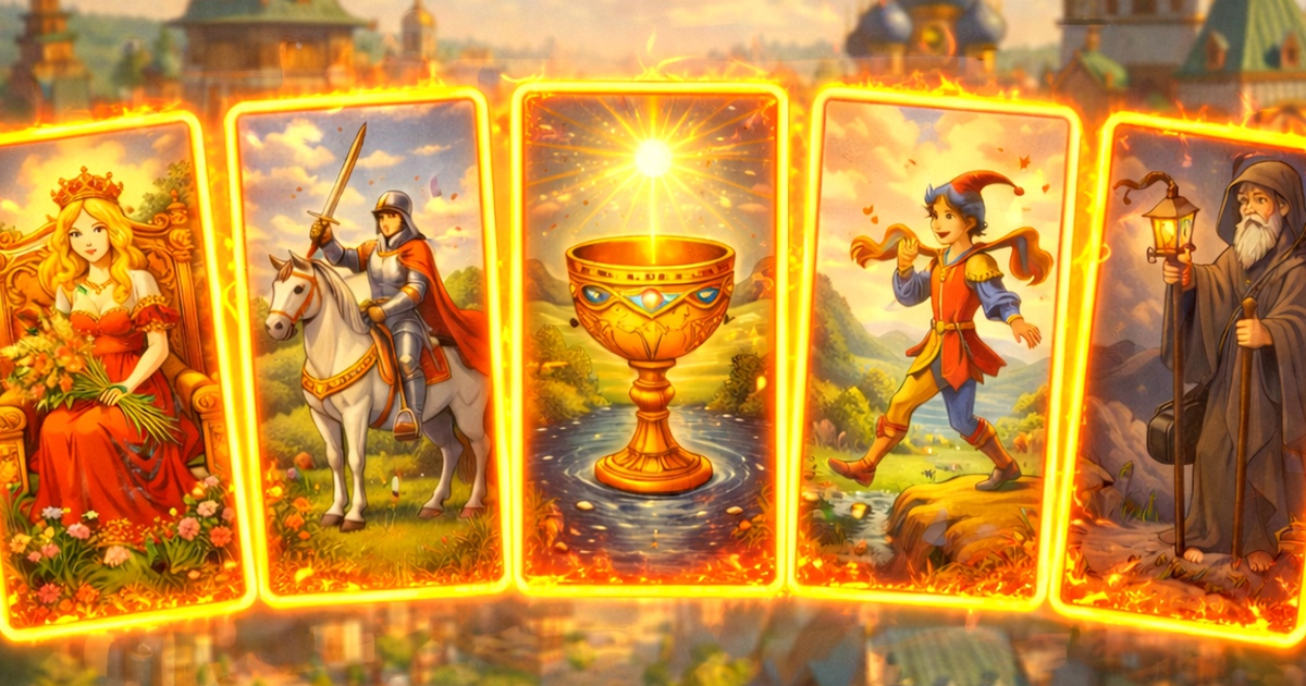 «Тройка Кубков» приглашает повеселиться: друзья позовут в гости, коллеги предложат что-то отметить. Три карты работают как оркестр: деньги есть, дома хорошо, друзья рядом. Единственное: знайте меру за столом, третья порция оливье в полночь никого не делала счастливым наутро.