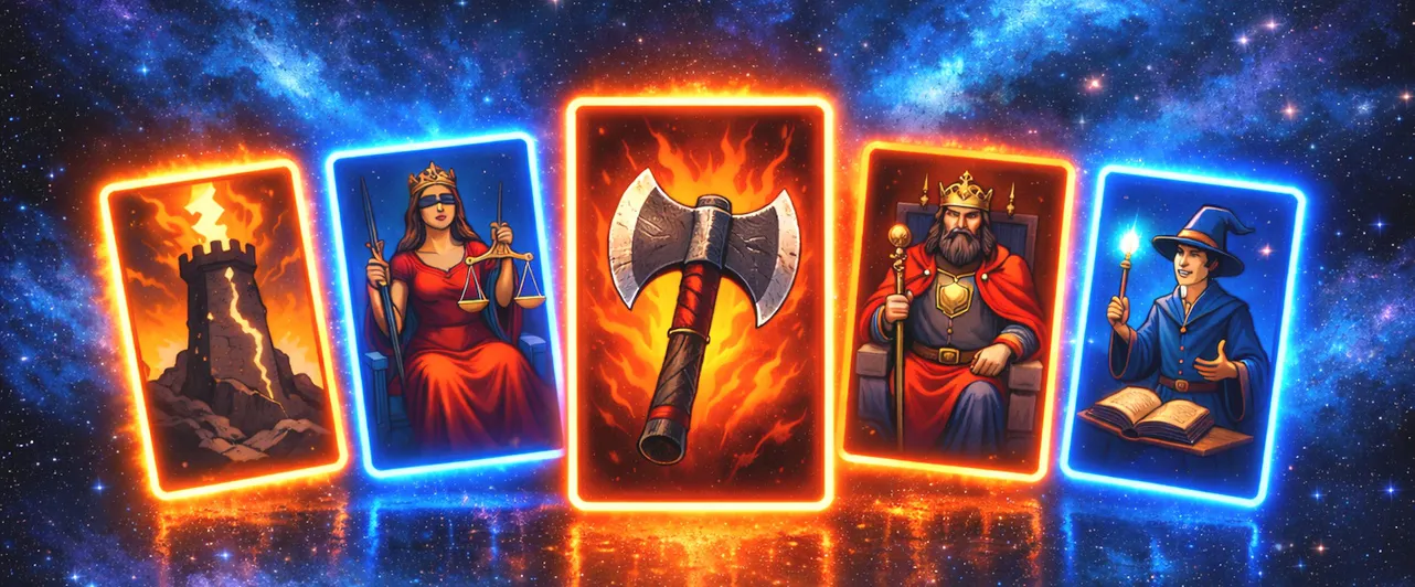 Раки, ваш расклад про то, как страх убивает возможности. «Король Жезлов» — это вы в лучшем виде: харизма, идеи, лидерство. А «Четверка Пентаклей» — это ваш внутренний перестраховщик, который шепчет: «А вдруг потеряешь то, что есть?».