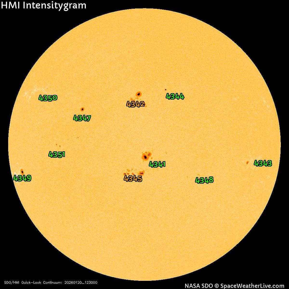 Поток частиц — не единственный источник возможных магнитных бурь. На видимой части Солнца все еще остаются пятна AR4342 и AR4345 с нестабильными магнитными полями, способные выдавать мощные вспышки с корональными выбросами, направленными к Земле.