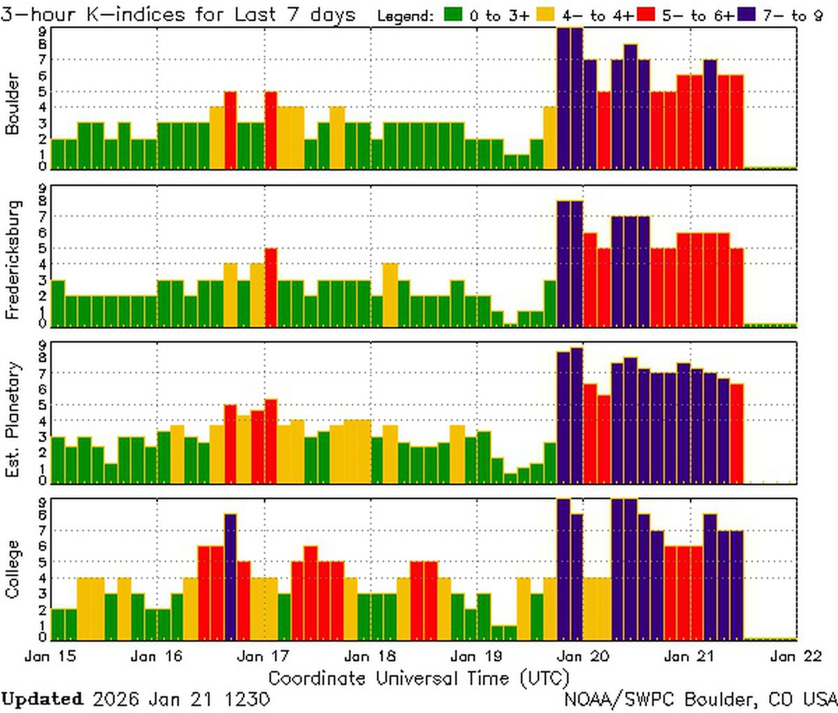 Прогноз на 21-22 января очень напоминает прогноз на 20-21 января. Аналитики полагают, что геомагнитная буря будет продолжаться до вечера 21 января, затем на некоторое время прекратится, а потом вспыхнет вновь.