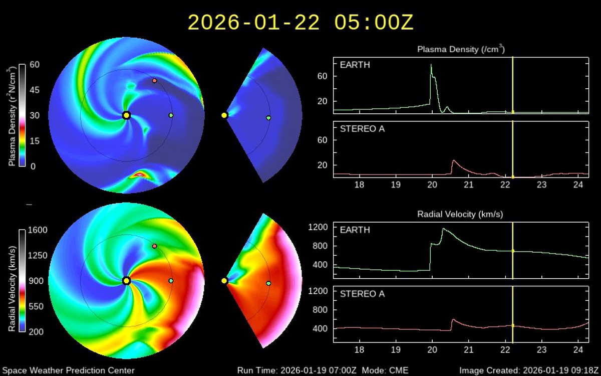 Магнитную бурю 22 января аналитики прогнозируют в районе 6 утра по Москве, ее сила оценивается на уровне класса G1. Впрочем, уровень возмущения магнитосферы таков, что буря вполне может начаться и в районе 3 часов утра.