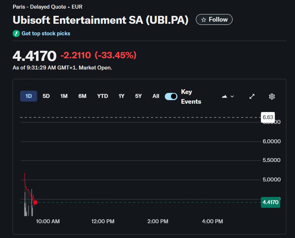 Сейчас одна акция Ubisoft стоит примерно 4.4 евро, это уровень сентября 2011 года. Распродажей акций инвесторы отреагировали на реорганизацию компании, в ходе которой Ubisoft перенесла или отменила множество игр.