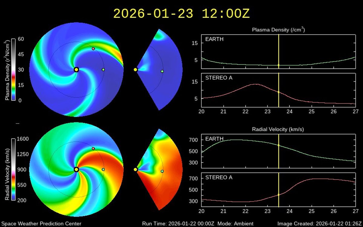 Если верить модели, в этот день Земля покинет поток солнечного ветра из корональной дыры и окажется в «спокойных водах». Следующее возмущение ожидается не ранее 26-27 января, когда мы снова окажемся в более быстром потоке частиц.