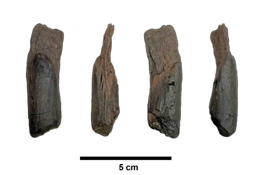 Здесь же был найден другой деревянный инструмент: небольшой фрагмент древесины, который удобно держать в руке. Ученые считают, что этот инструмент мог использоваться для доработки каменных орудий труда.