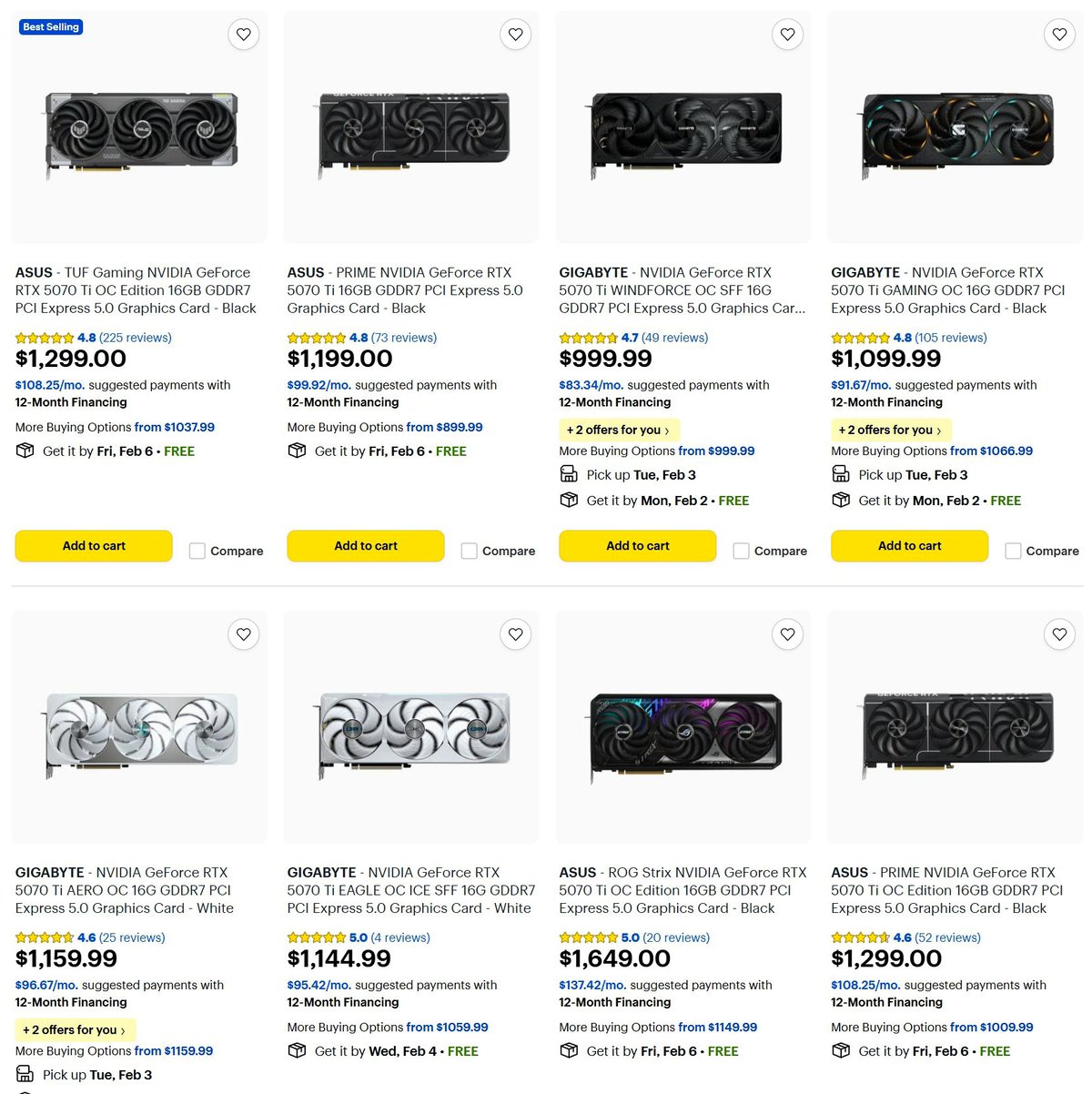 В частности, в Best Buy большинство доступных версий GeForce RTX 5070 Ti продаются значительно дороже $999. При этом речь идет не о топовых модификациях видеокарты, а о сравнительно массовых версиях от партнеров Nvidia.