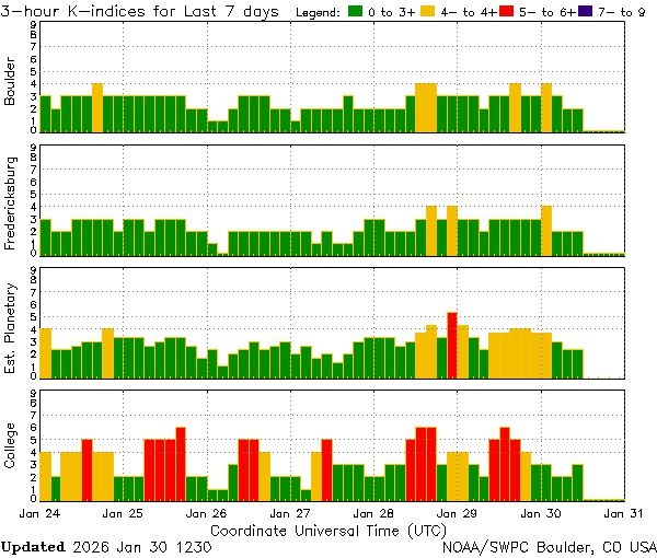 Геомагнитная обстановка 31 января будет умеренно нестабильной, считают аналитики NOAA США и британского Met Office. Индекс геомагнитной активности Kp будет колебаться в пределах 1.3-2.6 балла.