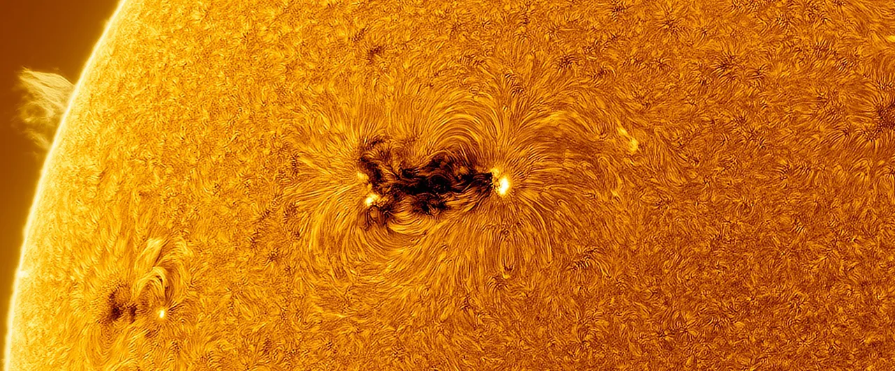 Астрофотограф Эдуардо Шабергер Пупо заснял огромное солнечное пятно AR4366 — самое активное пятно нынешнего солнечного цикла. За последние дни пятно породило несколько десятков вспышек.