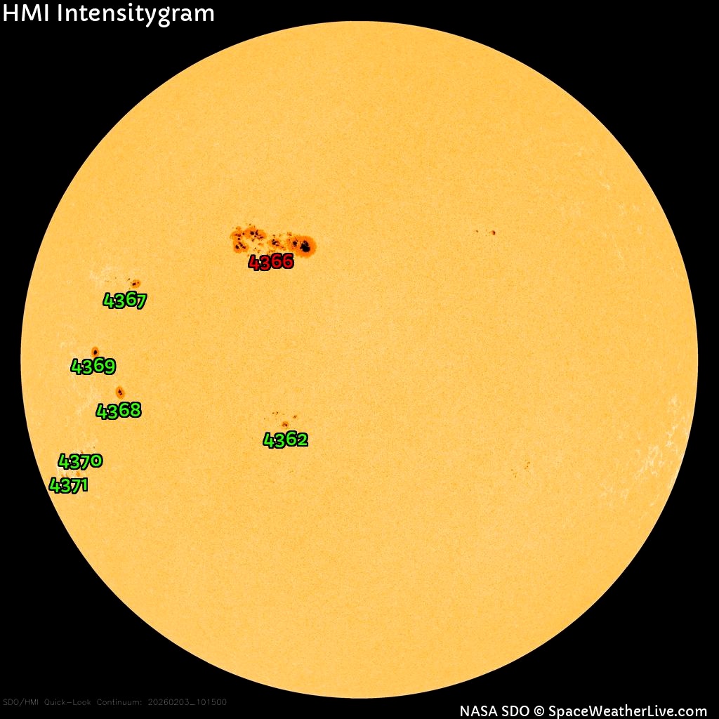 Вполне возможно, что геомагнитные бури продолжатся и после 6 февраля. Пятно AR4366, выдавшее нынешние корональные выбросы массы, продолжает демонстрировать очень высокую активность и вполне может сгенерировать еще несколько вспышек с выбросами.