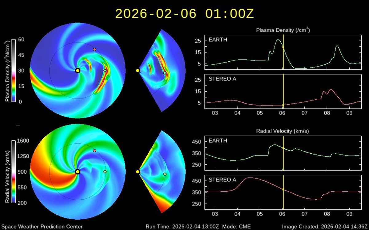 Судя по модели распространения солнечного ветра WSA-Enlil, в ближайшее время нас ждет и третий день магнитных бурь — это будет либо 7, либо 8 февраля. В это время до Земли доберется еще один корональный выброс массы Солнца.