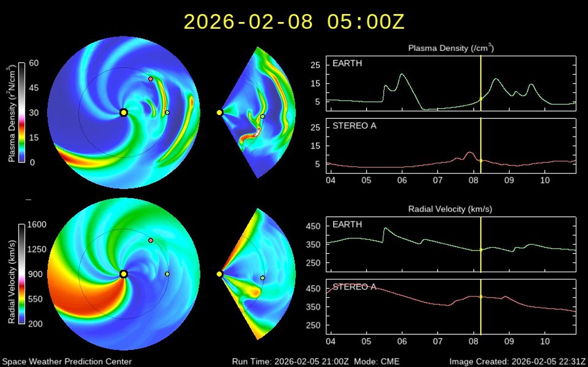 Согласно предварительным прогнозам, 9 февраля геомагнитная обстановка тоже будет напряженной. Индекс геомагнитной активности время от времени будет превышать 3, Земле предстоит пройти через еще один небольшой корональный выброс массы.