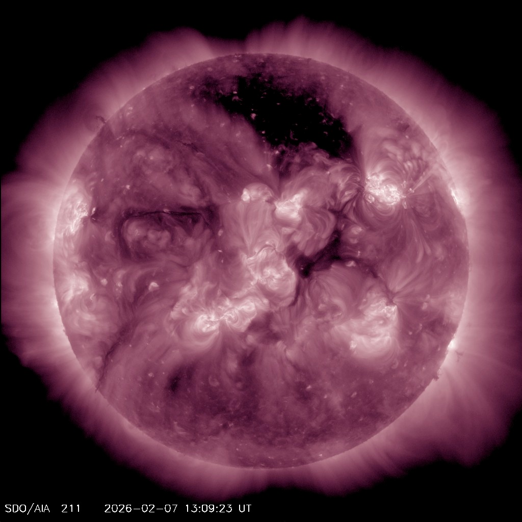 Следующим фактором геомагнитной активности станет прибытие к Земле потока солнечного ветра из крупной корональной дыры в северном полушарии Солнца. Судя по модели распространения солнечного ветра, поток доберется до Земли в районе 10 февраля.