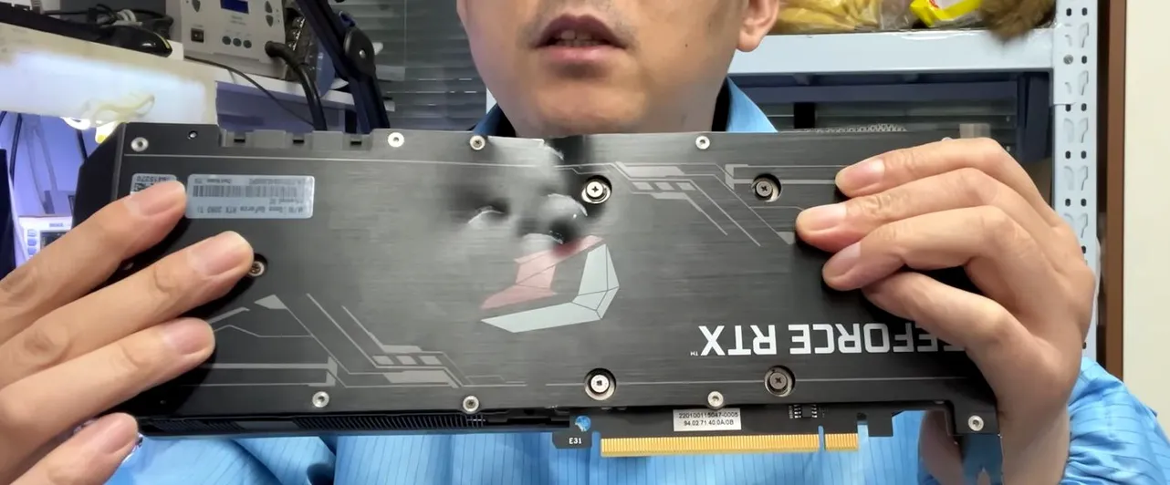 Китайская ремонтная мастерская Brother Zhang опубликовала ролик с необычным ремонтом видеокарты GeForce RTX 3080 Ti. Владелец видеокарты рассказал, что устройство пострадало от рук его разгневанной девушки: она нанесла по карте несколько мощных ударов.