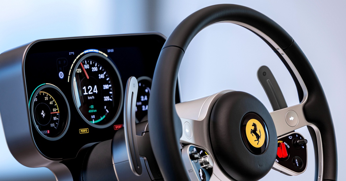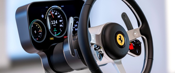 Трехспицевый руль Luce выполнен в стиле, вдохновленном классическими моделями Ferrari середины XX века. Приборная панель впервые в истории Ferrari перемещается вместе с рулем и сделана на базе OLED-экранов.