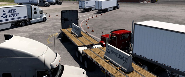 В Driving Academy появился новый модуль, посвященный управлению автопоездами с двумя прицепами. Игрокам предлагается серия сценариев, от базового движения вперед до сложных маневров задним ходом; за прохождение модуля можно получить милую таксу в кабину.