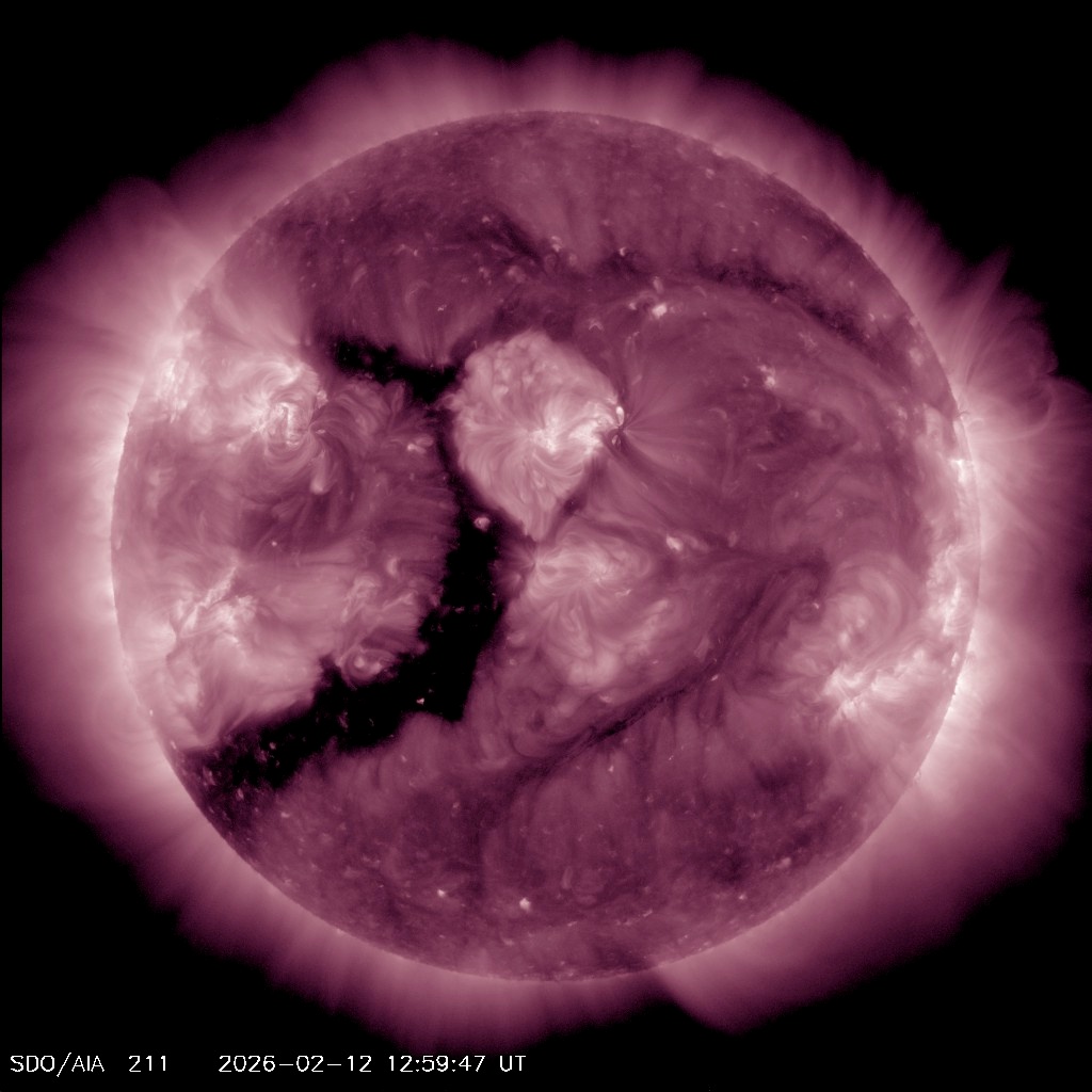 Сейчас на Земле фиксируются лишь локальные слабые магнитные бури, но вскоре ситуация может поменяться. Вечером 13 февраля или ночью 14 февраля планета окажется в потоке плазмы из корональной дыры в атмосфере Солнца.