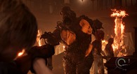 Кроме того, у нас есть бодрый Леон, фехтующий с зомби-пожарным (это явно новообращенный мертвец), особо головастый зомби и несколько почти идиллических видов Раккун-Сити.
