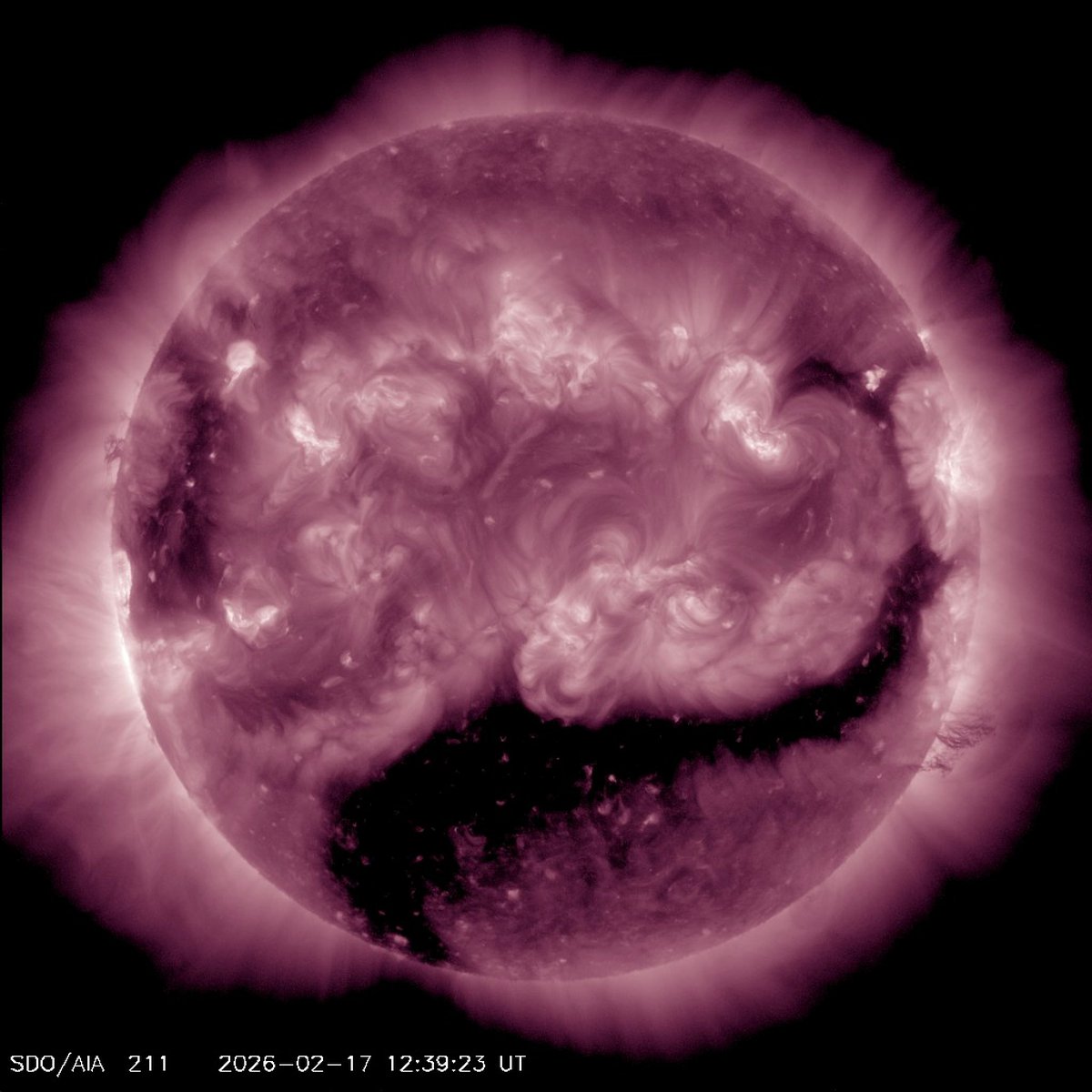 Согласно модели распространения солнечного ветра WSA-Enlil, Земля выйдет из потока плазмы в районе 21 февраля. Однако снимки Солнца показывают, что на горизонте появилась еще одна корональная дыра.