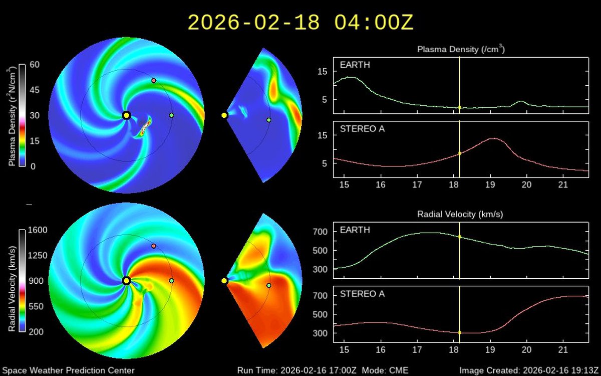 Хотя в прогнозе не упоминаются геомагнитные бури 18 февраля, с таким уровнем возмущения их вероятность довольно велика. Скорее всего, ситуация будет напоминать 17 февраля: магнитные бури не упоминались в прогнозе, но фактически они наблюдаются в некоторых регионах.