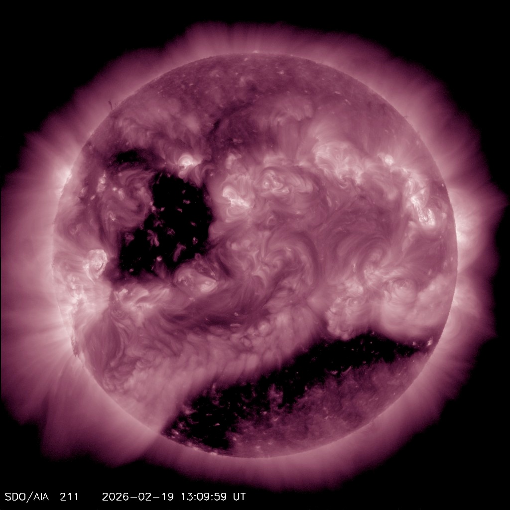 Геомагнитная обстановка 20 февраля будет — вы угадали — неспокойной, сообщают аналитики NOAA США и британского Met Office. Во-первых, Земля все еще проходит через поток частиц из корональной дыры в атмосфере Солнца.