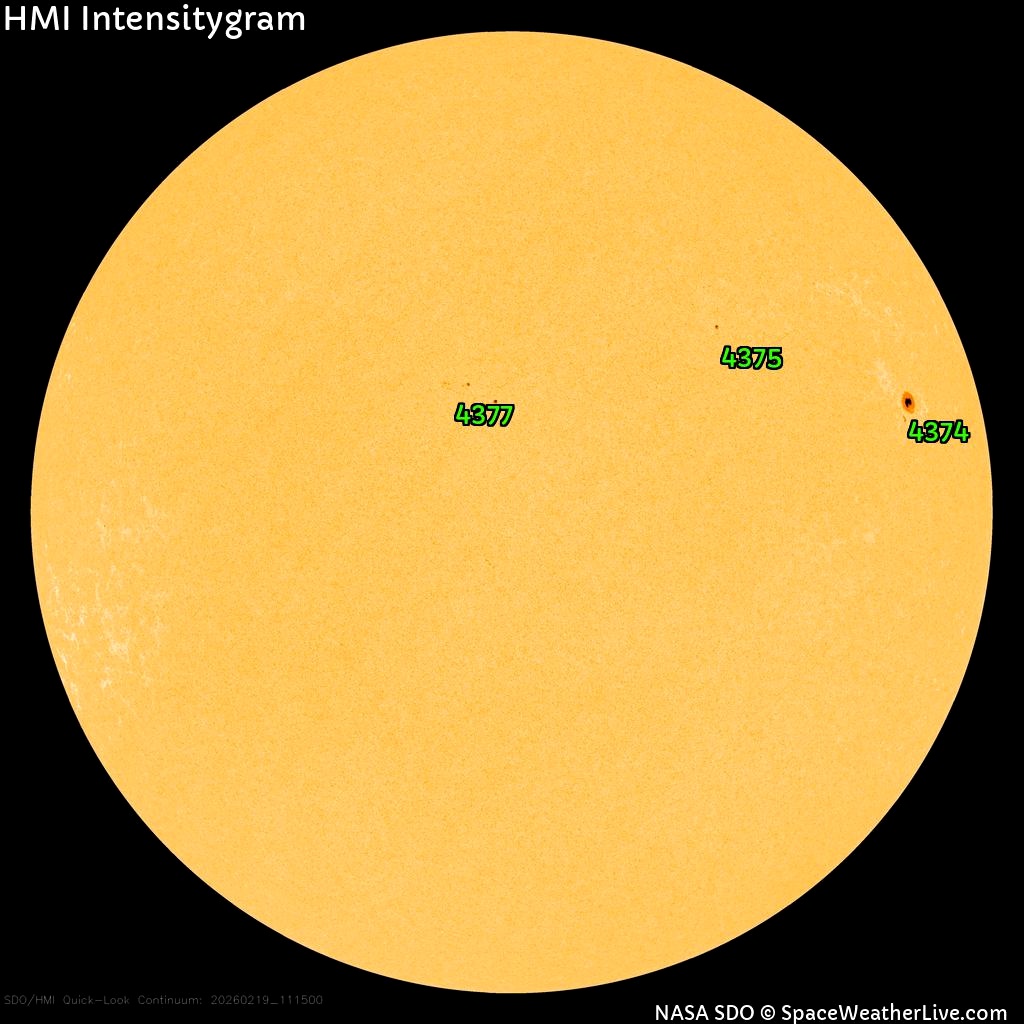 Другие факторы, способные сильно повлиять на геомагнитную обстановку, все еще отсутствуют. На видимой части Солнца есть всего 3 крупных пятна, все они демонстрируют минимальную активность и обладают стабильными магнитными полями.