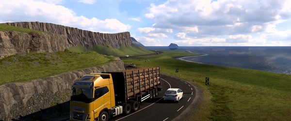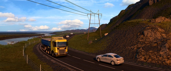 Разработчики симулятора дальнобойщика Euro Truck Simulator 2 опубликовали подборку скриншотов побережья Исландии из нового дополнения. Благодаря кольцевой дороге игроки смогут проехать по береговой полосе практически всей Исландии.