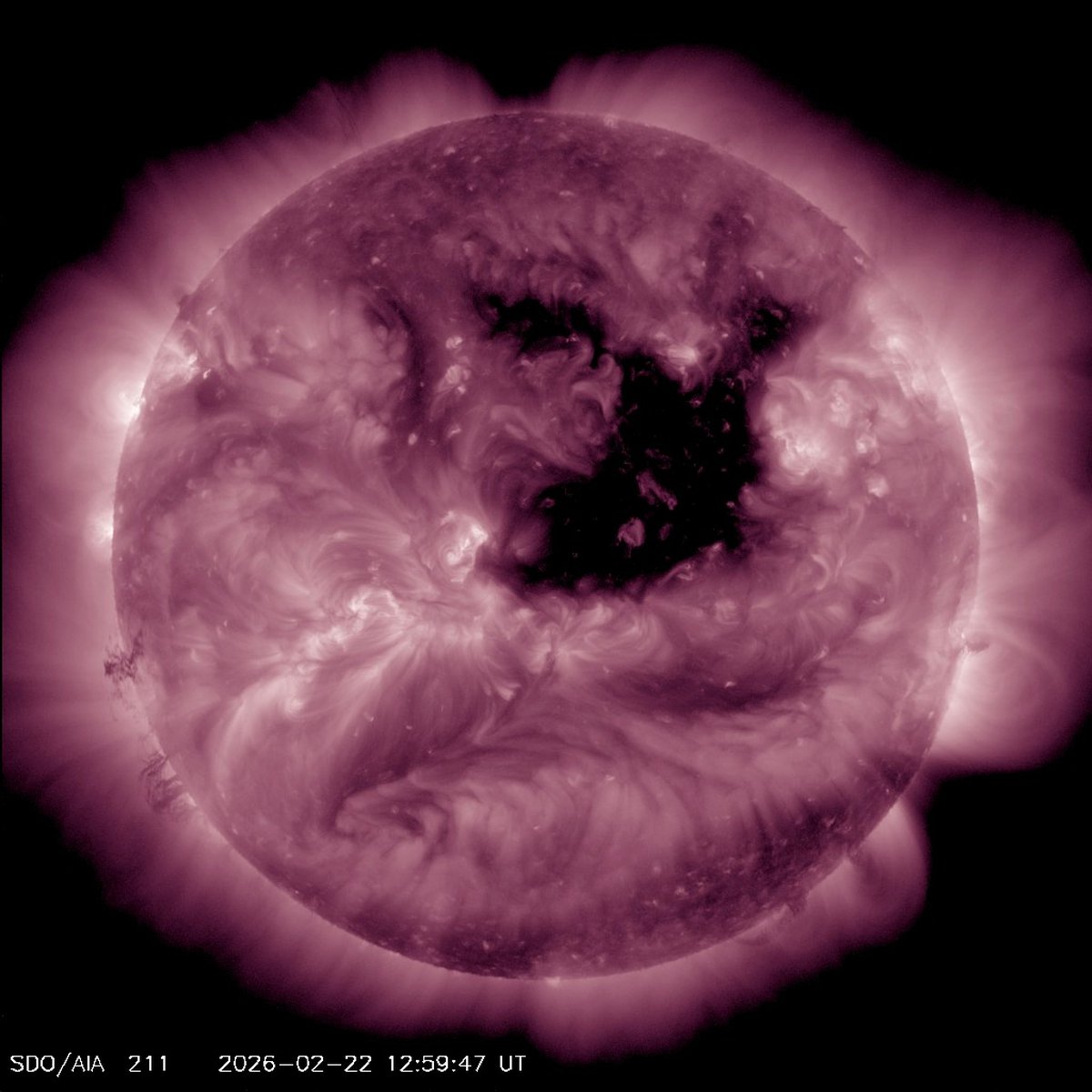 Источником геомагнитной бури 23 февраля будет поток частиц, выбрасываемый в космос корональной дырой в атмосфере Солнца. Ожидается, что прохождение Земли через этот поток растянется на несколько дней.
