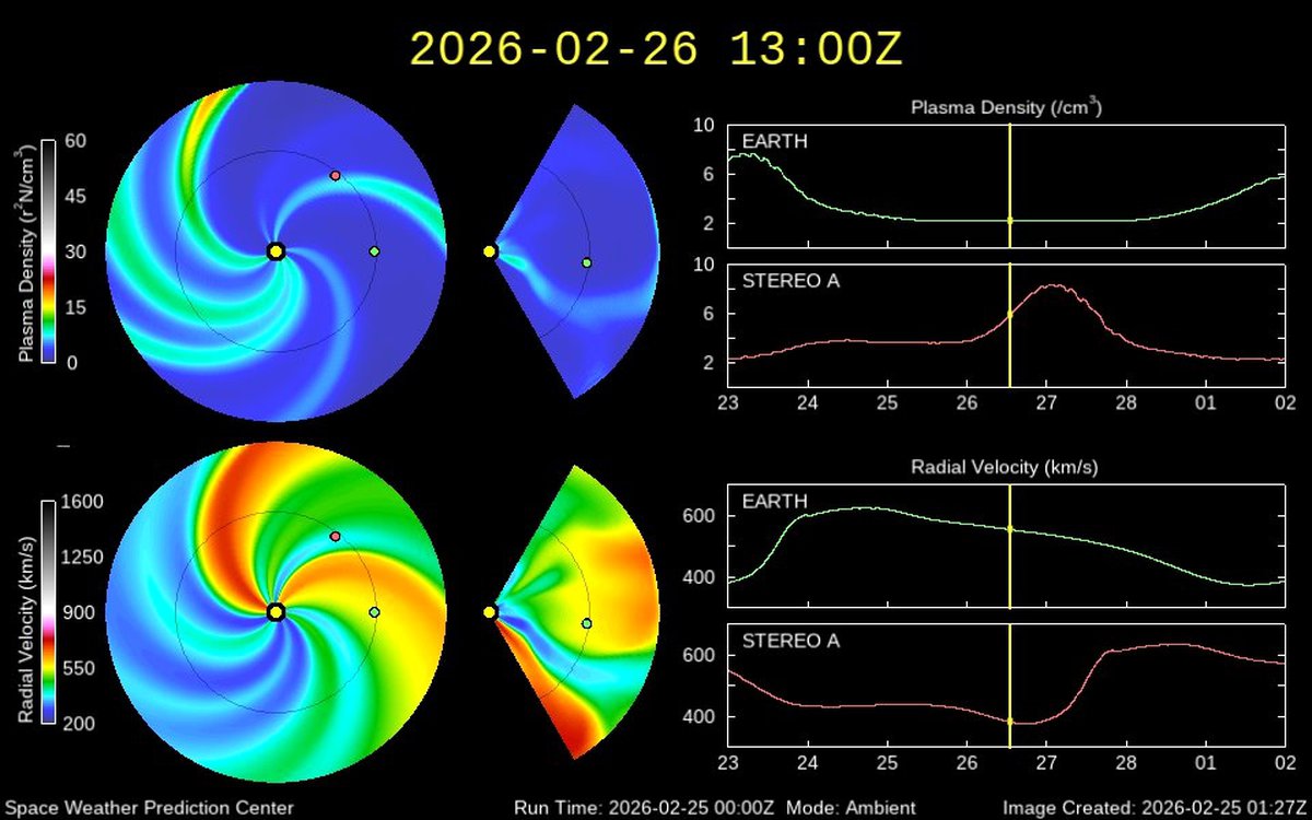 Наивысшие уровни активности 26 февраля ожидаются рано утром и поздно вечером по московскому времени. В то же время в прогнозе не упоминаются глобальные магнитные бури — возможны лишь локальные возмущения.