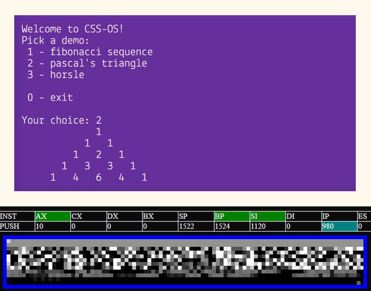 Разработчик Лира Ребан сумела реализовать на чистом CSS — это язык, с помощью которого определяются стили веб-страниц — эмулятор 16-битного процессора на архитектуре x86. Ребан подчеркивает, что использовался только CSS, без JS и так далее.