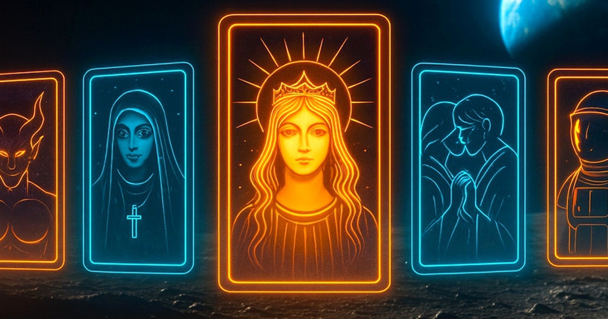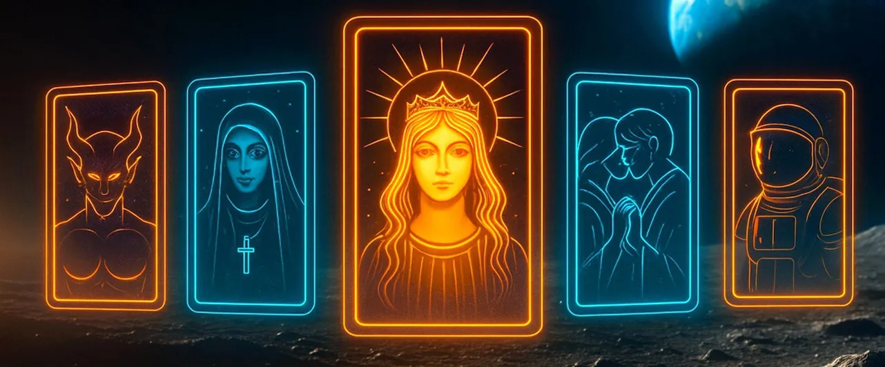 Третья карта — «Девятка Мечей». Вот тут все не так радужно. Если первые две карты — это теплый плед и какао, то «Девятка Мечей» — это три часа ночи, когда вы лежите и смотрите в потолок, прокручивая в голове все возможные варианты того, как все может пойти не так. Вам только что выпали «Мир» и «Десятка Пентаклей», жизнь вроде бы складывается, но мозг отказывается в это верить. Карта предупреждает: почти все, что вас пугает, существует только в вашей голове. Но легче от этого знания почему-то не становится.