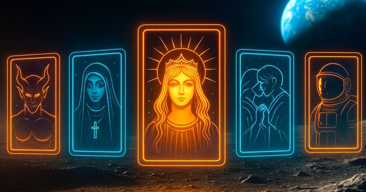 Третья карта — «Девятка Мечей». Вот тут все не так радужно. Если первые две карты — это теплый плед и какао, то «Девятка Мечей» — это три часа ночи, когда вы лежите и смотрите в потолок, прокручивая в голове все возможные варианты того, как все может пойти не так. Вам только что выпали «Мир» и «Десятка Пентаклей», жизнь вроде бы складывается, но мозг отказывается в это верить. Карта предупреждает: почти все, что вас пугает, существует только в вашей голове. Но легче от этого знания почему-то не становится.
