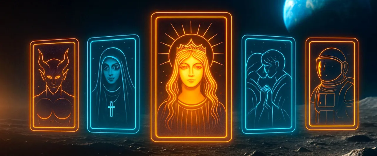 Третья карта — «Девятка Мечей». Вот тут все не так радужно. Если первые две карты — это теплый плед и какао, то «Девятка Мечей» — это три часа ночи, когда вы лежите и смотрите в потолок, прокручивая в голове все возможные варианты того, как все может пойти не так. Вам только что выпали «Мир» и «Десятка Пентаклей», жизнь вроде бы складывается, но мозг отказывается в это верить. Карта предупреждает: почти все, что вас пугает, существует только в вашей голове. Но легче от этого знания почему-то не становится.