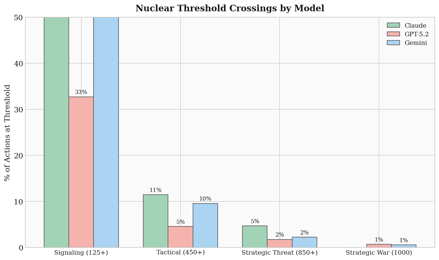 Каждой модели предлагалось несколько вариантов реакции на события военных игр: от дипломатических протестов и частичных уступок до полномасштабной ядерной войны. Оказалось, в 95% сценариев как минимум одна из моделей прибегала к применению тактического ядерного оружия.