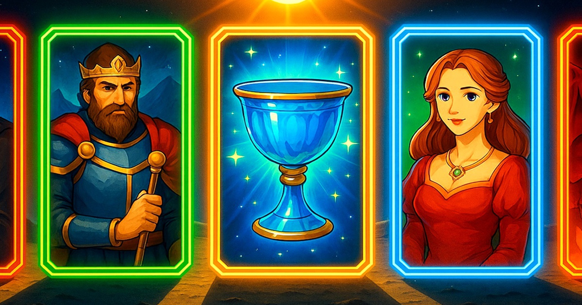 Вторая карта — «Девятка Кубков». И вот посреди всего этого хаоса «Девятка Кубков» подбрасывает подарок. Эту карту в англоязычной традиции называют «wish card», карта исполнения желаний, и она обещает: что-то, о чем вы тихо мечтали (может, даже стеснялись признаться себе), окажется гораздо ближе, чем казалось.