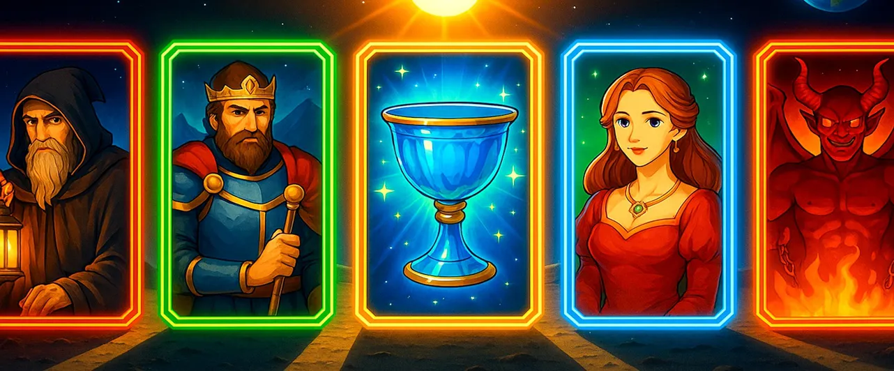 Вторая карта — «Девятка Кубков». И вот посреди всего этого хаоса «Девятка Кубков» подбрасывает подарок. Эту карту в англоязычной традиции называют «wish card», карта исполнения желаний, и она обещает: что-то, о чем вы тихо мечтали (может, даже стеснялись признаться себе), окажется гораздо ближе, чем казалось.