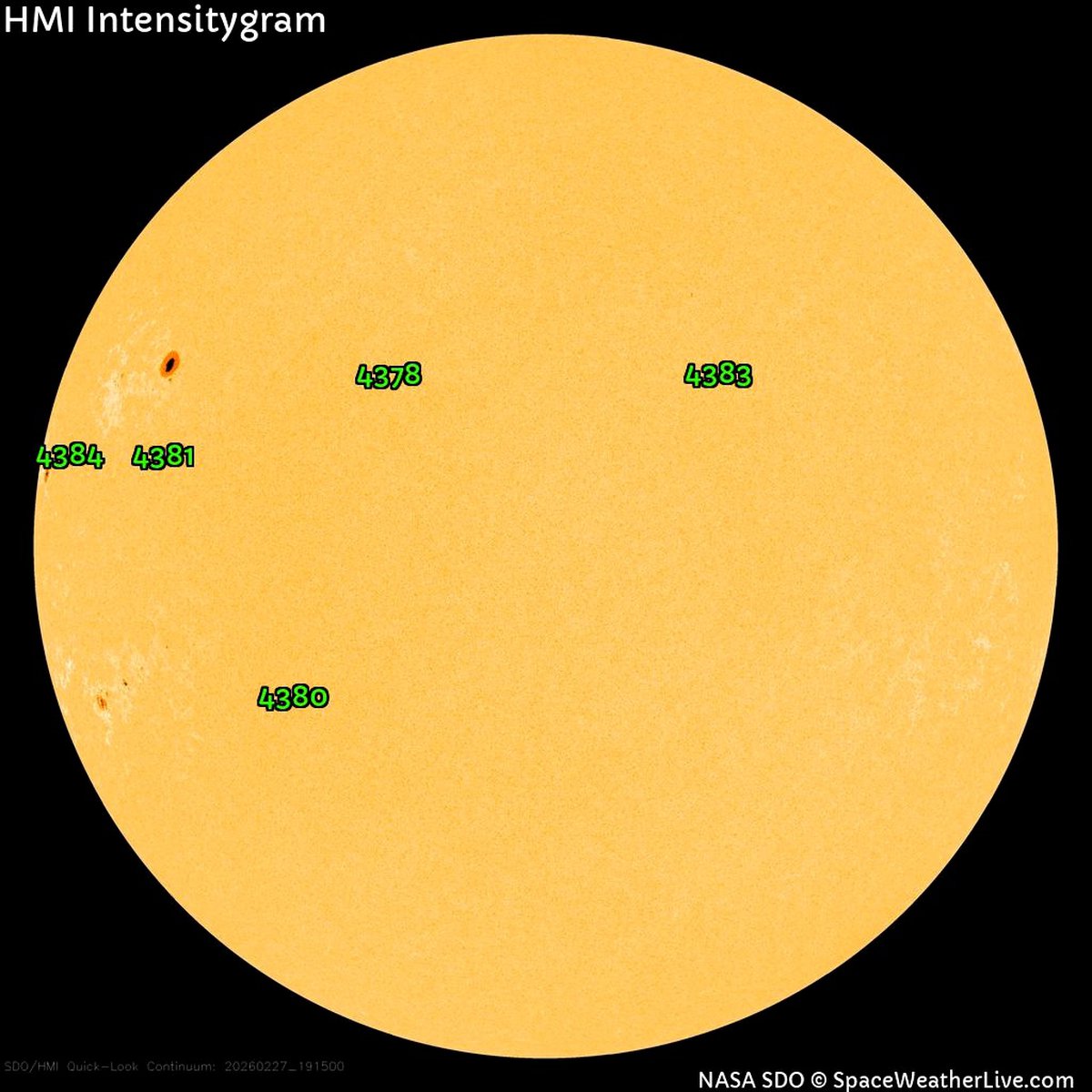 Хотя на видимой части Солнца обнаружено уже пять пятен, все они обладают стабильными конфигурациями магнитных полей. Вероятность мощных вспышек сейчас считается достаточно низкой.